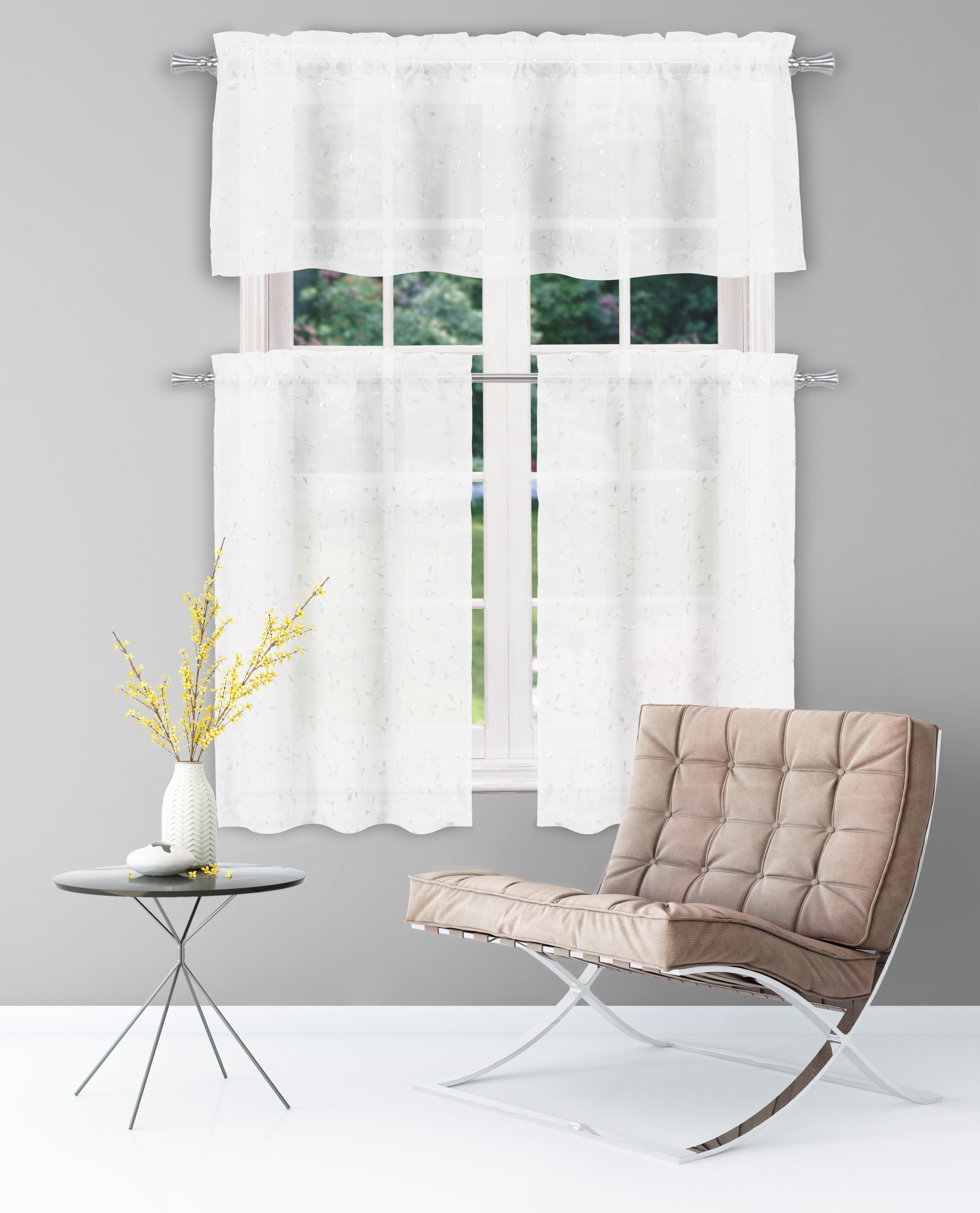 Home Maison Sheer 3 Piece Window Curtain Set With Metallic Leaves And Branches Design via www.walmart.com