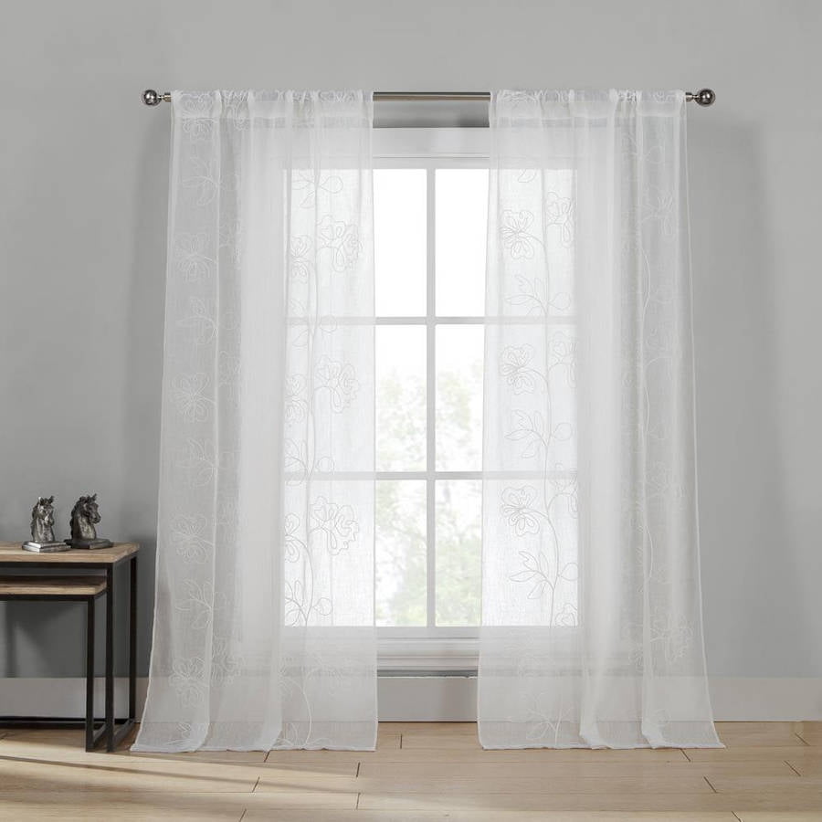 Home Maison White Floral Rod Pocket Room Darkening Curtain 58 In W X 15 In L Set Of 2 Katn 11491d12 The Home Depot via www.homedepot.com