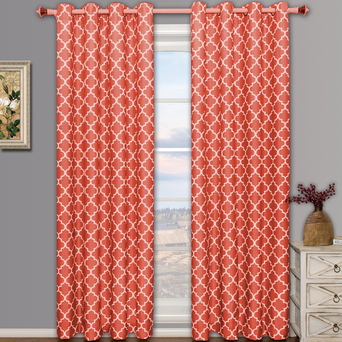Eclipse Coral Geometric Thermal Blackout Curtain 37 In W X 95 In L 16432037095crl The Home Depot via www.homedepot.com
